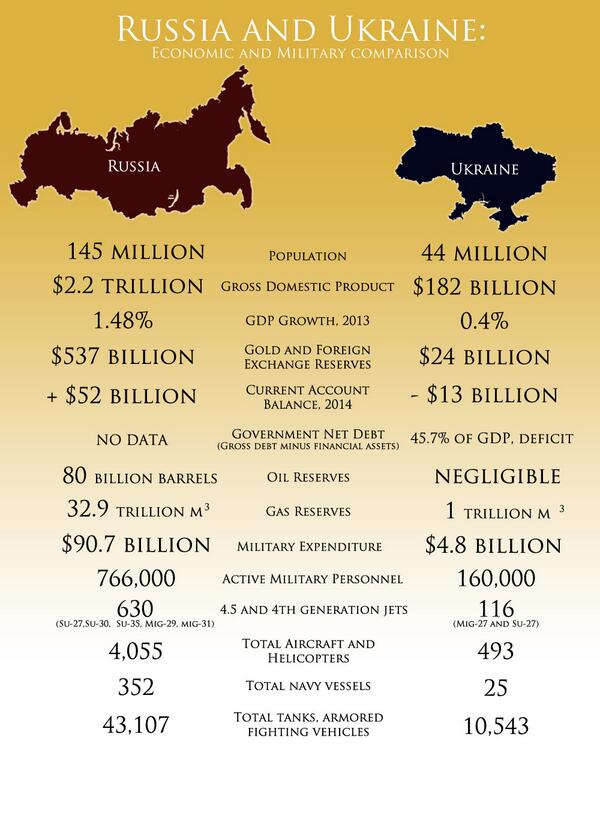 In fact, Ukraine has only one – bloody – option to regain control over Crimea (and other potentially separatist regions). That means mobilizing the armed forces and going against the aggressor with arms. Just like Yanukovych was brought down at a price of victims’ blood, Russia will retreat when it meets decisive armed resistance. Because Russia is not nearly as strong as it makes itself out to be.