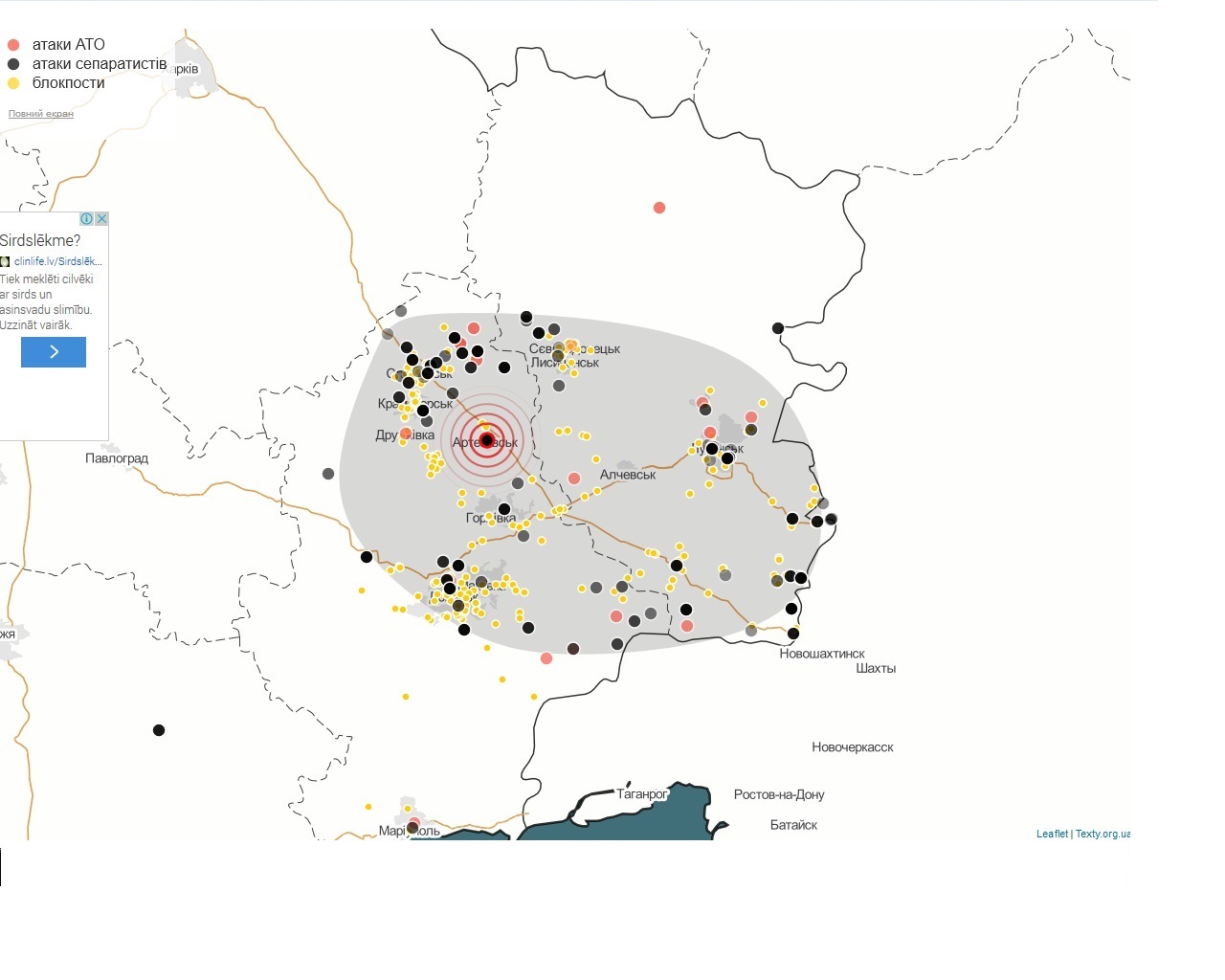 Interaktīvā ATO karte atrodama šeit vai šiet.  Atspoguļotas galvenās sadursmes UA DA kopš 2.jūnija