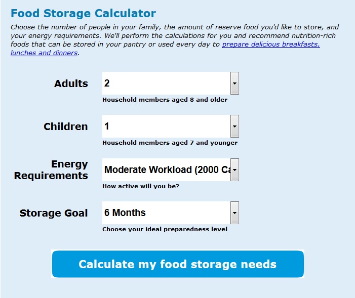 Zemāk ir tiešsaistes uzglabājamās pārtikas kalkulātors, kas var būt labs ideju avots dažādiem dzīves gadījumiem. Viss ko būtu jāzina, lai to izmantotu: