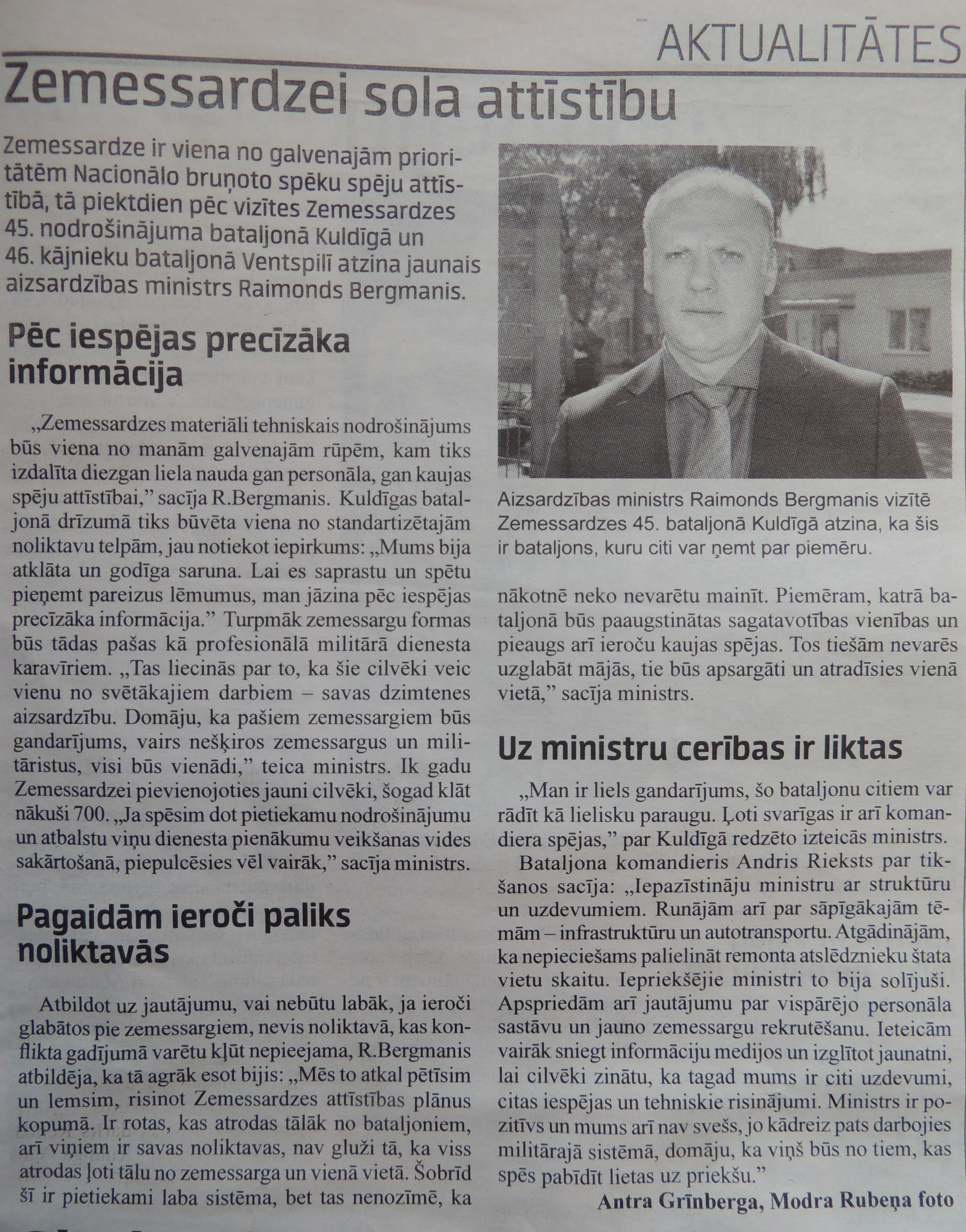 3. No politiskā viedokļa Bergmanis rīkojas pareizi. Visi tie ieroču un rāciju iepirkumi ir saujiņas uz politiskās popularitātes svariem. Toties viens piedzēries zemessargs, kurš pašaudīsies gaisā pie kāda bērnudārza ir smilšu ešelons uz politiskās karjeras kapa. Kāpēc? Tāpēc kā uz vēlētāju tas nostrādā. Un politiskie oponenti tam piemetīs bez atskatīšanās uz valstisko lietderību. Nav grūti dabūt kādu zemīti, kuram nav ko atmaksāt kredītā par māju kurā ģimene dzīvo. Bet piedāvās iespēju pasēdēt 2-3 gadus cietumā, kad ģimene paliks dzīvot mājā ir vērā ņemama samaksa. Domju tas nebūs sarežģīti.