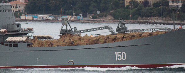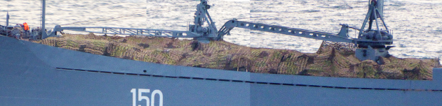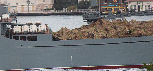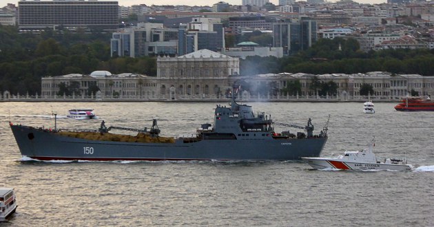 150 Alligator class landing ship Saratov passing through Istanbul, escorted by Turkish Coast Guard. Photo: Alper Böler. Used with permission.