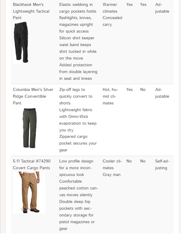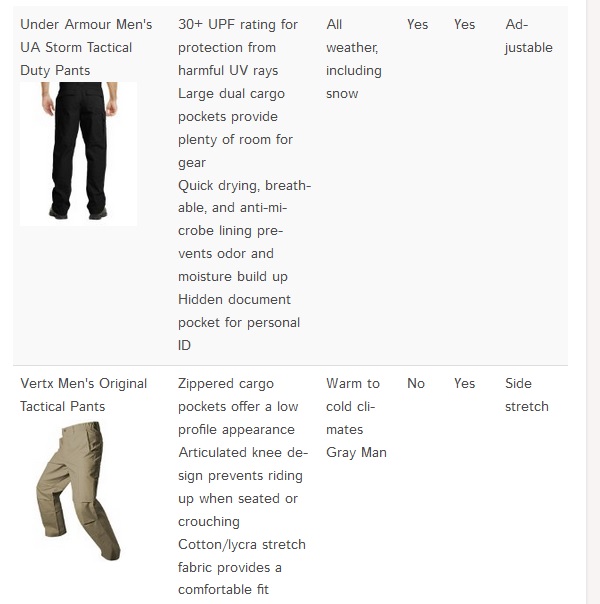 Iepriekš jau bija ieraksts par apaviem ( šeit ), tagad salīdzinošā tabula par gatavnieka pārgājiena biksēm. Nevajag ieciklēties uz brendiem, bet pievērsiet uzmanību īpašībām, kas tiek vērtētas.