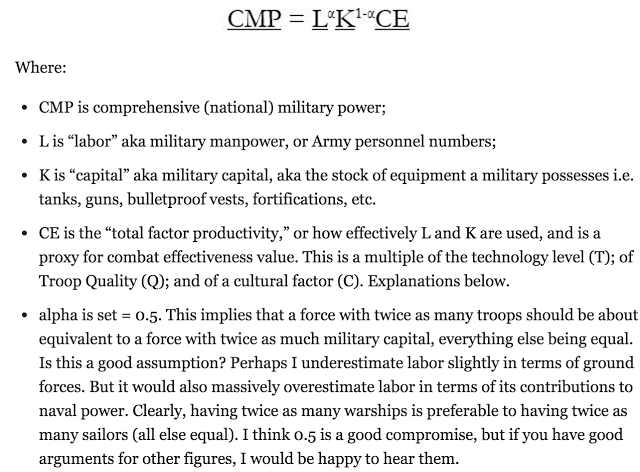 Zemāk ir viena no formulām, kā aprēķina ticamu valsts militārā spēka indeksu, kas nerada pārpratumus vai neizraisa smieklus kā tas biezi gadās ar līdzšinejām metodikām.
