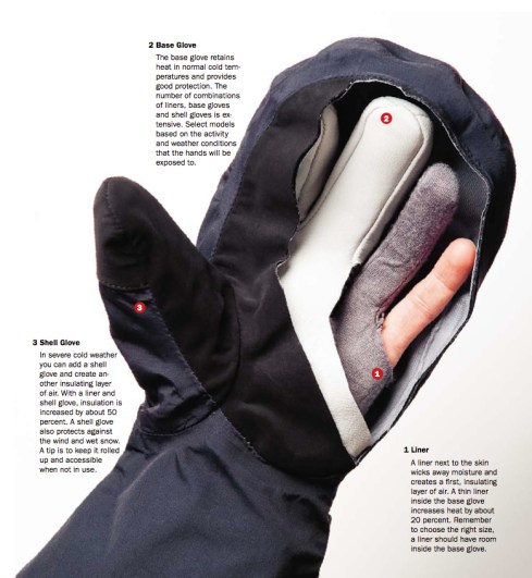 lielākiem mīnusiem (līdz ~-15), var lietot slēpošanas cimdus-pirkstaiņus. protams, ar tādiem gādāt malku baigi negribas, bet tajos momentos īslaicīgi atkal var pārvilkt biezos depo ādas cimdus. pārējām opcijām (šaušanai, slēpju stiprinājumu aiztaisīšanai, …) ir ok.