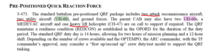 • Latvijas NBS ir un būs aktuāla zibenīga un pārliecinoša reaģēšana jebkurā vietā LV teritorijā, jo īpaši ņemot vērā, ka SUV un kaujaspējīgās kājnieku PD vienības koncentrējas ap Rīgu (MC Alūksnē un PD rotu Dpilī paturot prātā). Bet, ja plānotos 4 UH-60 aprīkos ar ieročiem, tas samazinās to desanta kravnesību un otrādi, vairāk desanta mazāk ieroču. Līdz ar to aeromobilam QRF KĀJNIEKU vadam uz 4 helikopteriem jāpieliek vēl 2-4 helikopterus aprīkotus CAS lomai. Tad tas ir spēks.
