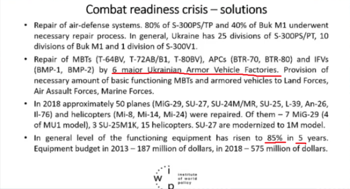 Nebūt ! Ukraina tāpat kā Krievija ,Kazahija atrodas PSRS bruņojuma rezerves. Jauna tanka izgatavošanas cena no 3,2 milj.$ T90M un Ukraiņu T84 ”Bulat” -3 milj.$ … Modernizācija T72BM –> BM3 izmaksā 200.000/250.000 $ /eks, Ukraina-T64BV renovācija un modern.-150.000 $ Lineārs skatijums nepalīdz. Ir vēlmes un ekonomiskā realitāte, 2018/19 gada Ukraina atvēl no 4% līdz 5% IKP aizsardzībai, kopumā 3,8-5 Miljardi $.