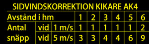 Protams , tabula ir domāta sānvēja ietekmes koriģēšanai gadījumos, kad AK4 ir aprīkots ar optisko tēmekli