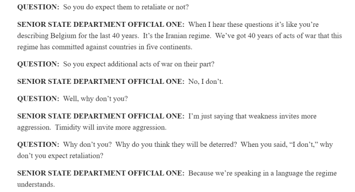 Irāņi jau griež zobus uz IL, ka tie iedevuši informāciju US. Pa to laiku amerikāņu VIP aprindās viegla panika par džetu izmantošanu, ja nu tie iekļauti atriebēju sarakstā. interesanti, ka tagad eskalāciju var izprovocēt jebkura 3. puse iznīcinot kādu(s) amerikāni zem irāņu lozungiem.