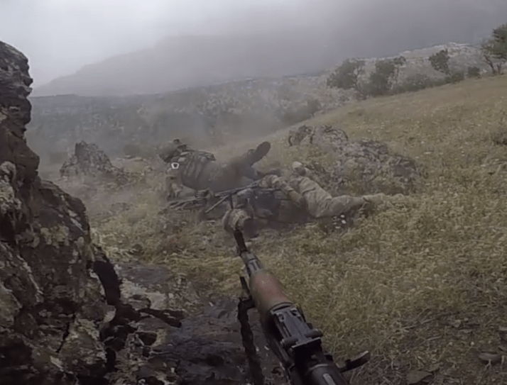 Diezgan grūti tai video saprast detaļas, bet es teiktu, ka izšķirošā problēma bija tur, ka turki visi ieņēma pozīciju vienuviet, aiz viena klintsbluķa. Pēc vienas granātas arī neviens vairs nebija spējīgs pretoties. Protams, viņiem vispār bija maz cerību izkulties sveikā, tomēr, ja viņi būtu izklīduši, kurdiem būtu stipri grūtāk.