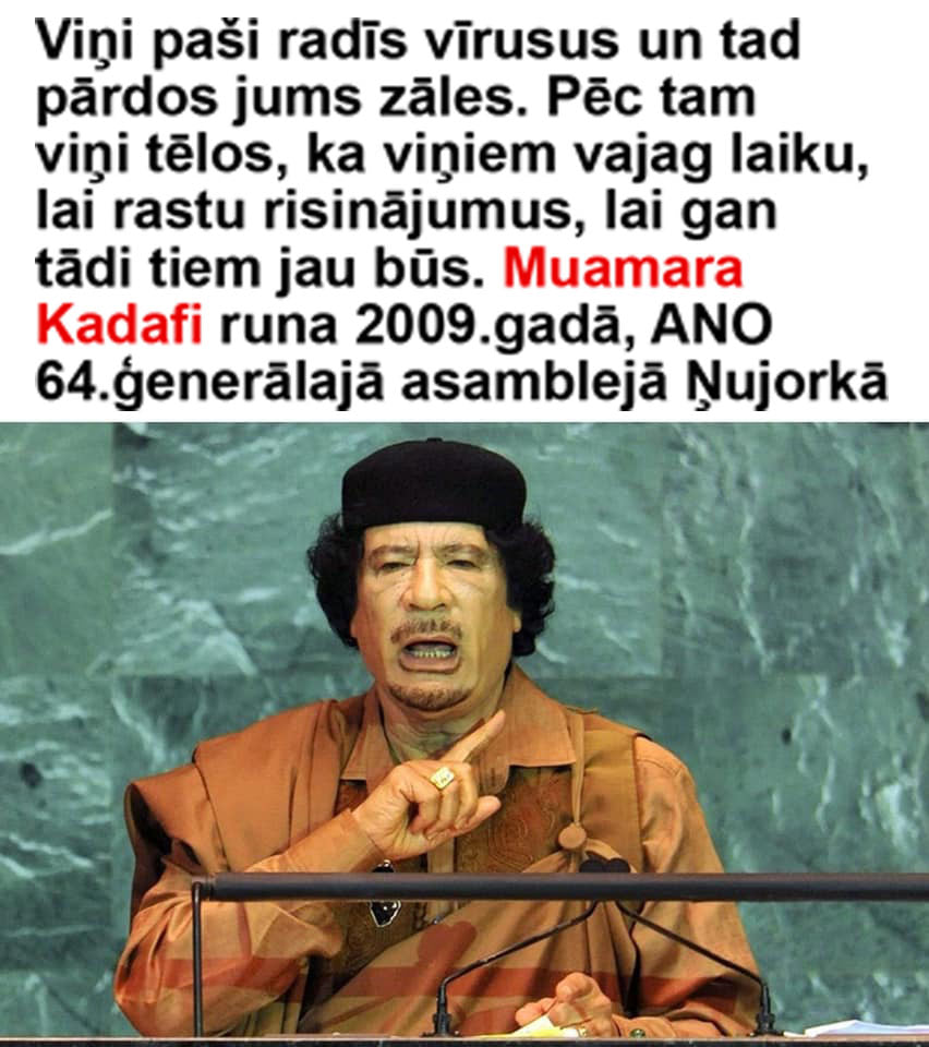 vara bungas: Burbulis pārpildīts ar memiem par to, ka Kadafi visu paredzēja attiecībā uz COVID-19 un vispār viņš bija baigais pipars, kuru ļaunie kapitālisti par to nomušīja. Piemērs..