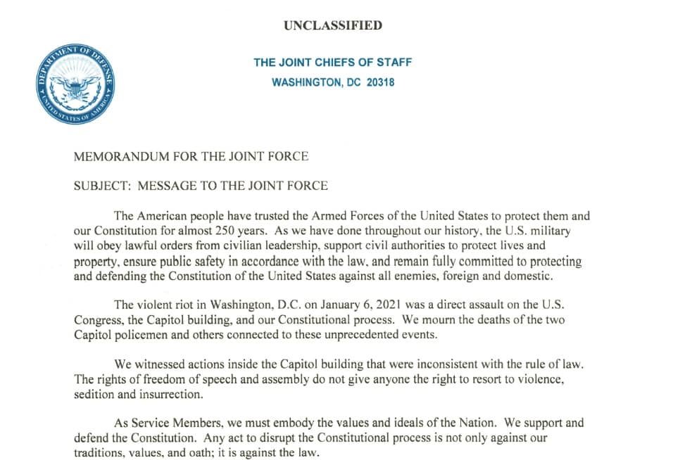 Ņemot vērā, ka vēstule tika publicēta pirms gājiena uz Kapitoliju, LV to reti kurš pamanīja. Tomēr šādas vēstules parādīšanās ir bezprecedenta notikums, cilvēki, kas to parakstīja ir ļoti dažādi pēc saviem politiskajiem uzskatiem, attiecībām ar Trampu , partejiskās piederības un daudzi diez ko nesatiek savā starpā. Ņemot vērā ex-aizsardzības ministru informētības pakāpi bail iedomāties, kam vajadzēja notikt, lai šie sirmie kungi tik aši vienotos kopējam tekstam. Par to admirālis Džeijms Stavridis:
