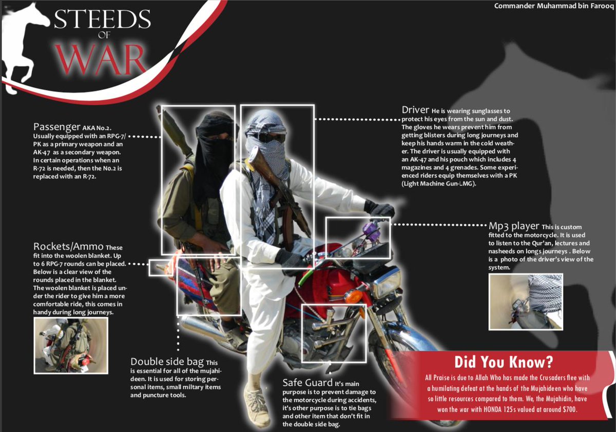 “We, the Mujahidin, have won the war with HONDA 125s valued at around $700.”