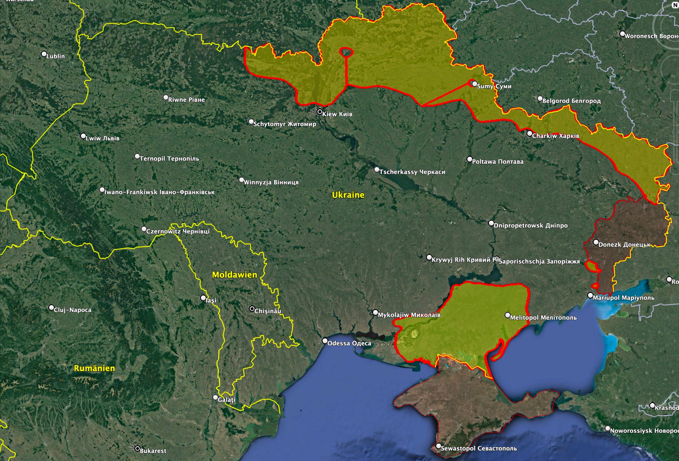 3. Mazliet militārāks situācijas atspoguļojums. Aizkrāsotās teritorijas nenozīmē RU pilnu kontroli. Viņi mēdz atstāt pie apdzīvotājām vietām nelielus garnizonus un virzīties tālāk. Te atkal parādās iespējas TA spēkiem.