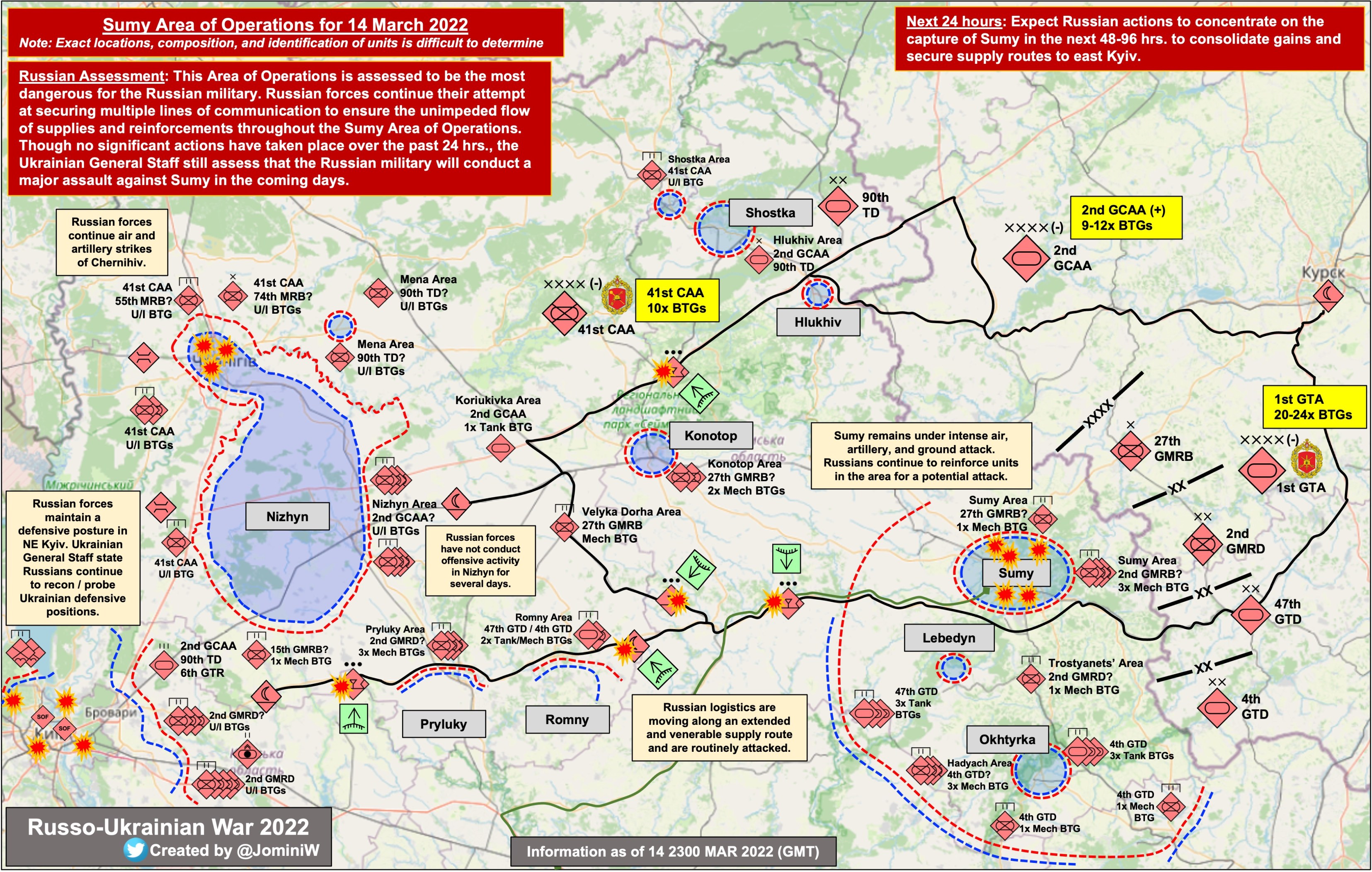 Sumi, Harkova, Konotopa uc – aplenkumu un pusaplenkumu haoss. RU vienībām ir lielas iespējas pašām nonākt aplenkumā vai sastapties ar uzbrukumiem no slazda. Plūstoša, mainīga un bīstama situācija abām pusēm.