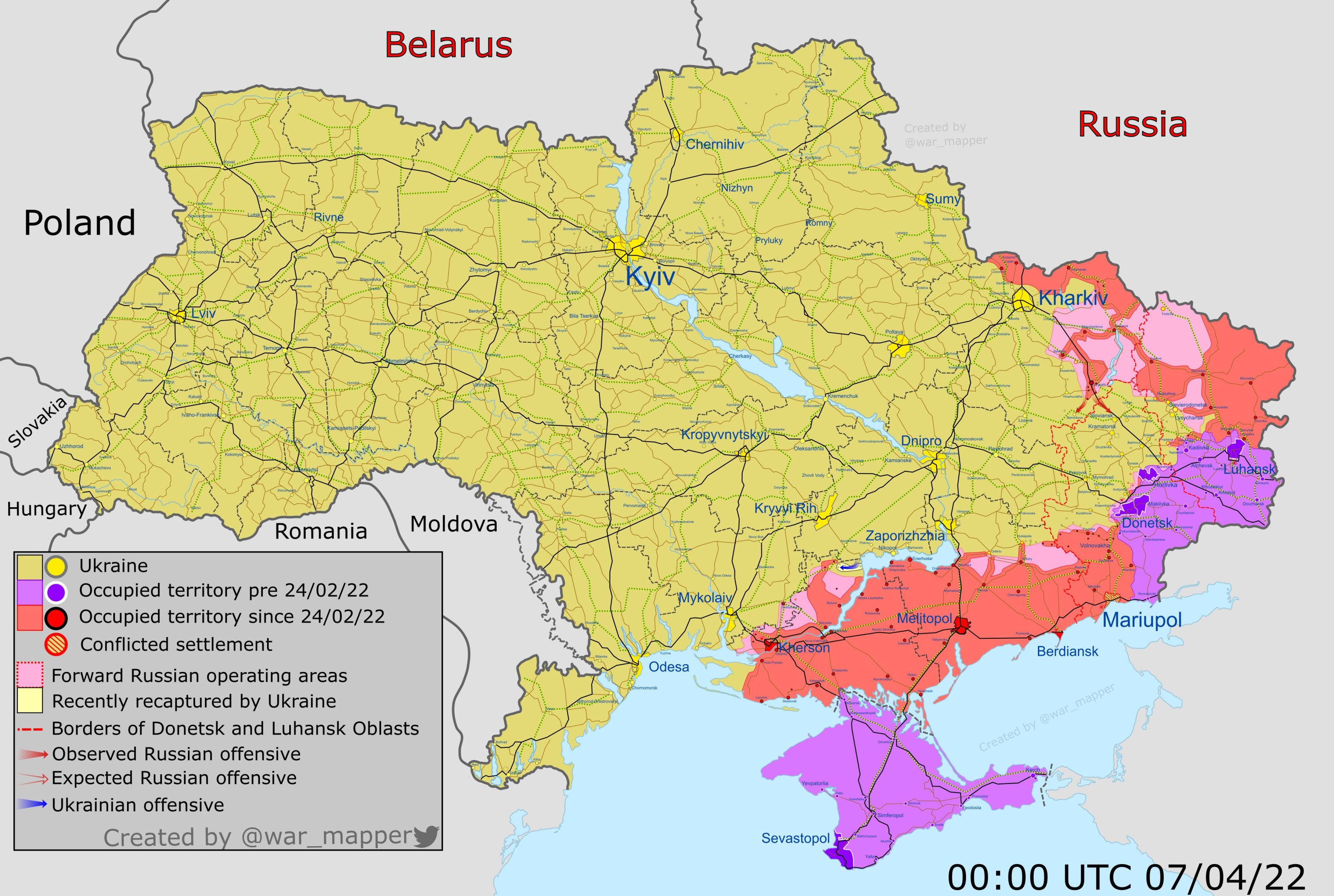 Kopumā slikta prognoze Kramatorskai, Slavjanskai un  Harkovai, bet diez vai pēdējo RU mēģinās ieņemt triecienā (Mariupoles bēdīgā pieredze) – spēki vajadzīgi “katla” veidošanai. Attiecīgi situācijas attīstības ātrumu noteiks mobilizācijas (ne)uzsākšana RU, bet jebkurā gadījumā galvenie notikumi notiks laikā līdz 9.maijam.