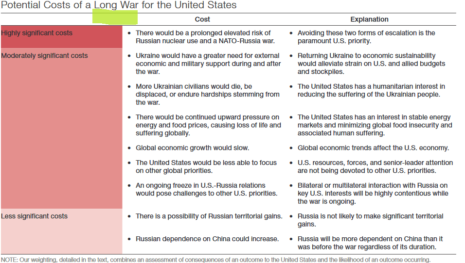 vara bungas: Kurš jautāja, kāds ir US plāns Ukrainā? Jau vairākkārt ir pierādījies, ka seciinājumi pie kuriem nonāk korporācijas RAND analītiķi tiek uzklausīti WH un tiem bieži tiek sekots. Salīdzinājis visus “par” un “pret” (skat. pētījumu) RAND pamatoti saka: