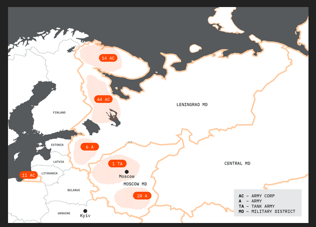 FI militārie pētnieki, visticamāk izpētot RU karaspēka dislokācijas vietu satelītattēlus, nonāca līdz aptuveniem skaitļiem par RU esošo un būvēto kazarmu ietilpību, kas netieši norāda uz RU plāniem attiecībā uz Ļeņingradas kara apgabalā izvietoto karaspēku. Somi prognozē, ka iestājoties “miera laikam” RU palielinās regulāro karaspēku ĻKA no 30 000 līdz 80 000 karavīriem. 14.armijas korpuss tiks palielināts līdz armijas statusam, kā arī tiks izveidots jauns 44.armijas korpuss, kas “atbildēs” galvenokārt par Kolas pussalas reģionu, kas RU ir īsta “Kaščeja ola” attiecībā uz nākotnes sadursmi Arktikā un stratēģiskajām kodolspējām kopumā.